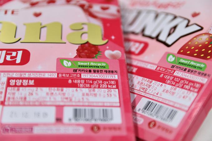 롯데제과x한솔제지, 1위 기업 만나 친환경 맞손…'카카오 판지' 개발