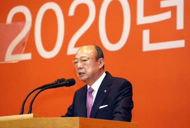 ▲ 김승연 한화그룹 회장이 지난해 1월 2일 서울 중구 더플라자호텔에서 열린 한화그룹 신년하례식에서 신년사를 하고 있다. [한화 제공]