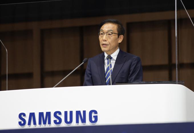 ▲ 김기남 삼성전자 디바이스솔루션(DS) 부문 부회장이 지난해 3월 18일 오전 경기 수원컨벤션센터에서 열린 제51기 정기 주주총회에서 발언하고 있다. [삼성전자 제공]