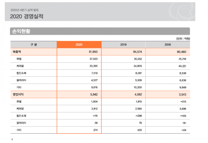 ▲ 한화솔루션 2020년 경영실적 [한화솔루션 제공]
