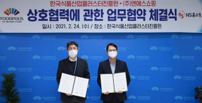 NS홈쇼핑은 식품 협력사 지원을 위해 효율적이고 우호적인 업무 수행 및 상호 협력 체계 구축을 목적으로 한국식품산업클러스터진흥원과 '상호협력에 관한 업무협약 체결식'을 진행했다. 코로나19로 인해 변화를 겪고 있는 식품 HMR의 시장 확대에 대응하고 품질관리 전문성을 높이기 위한 것.