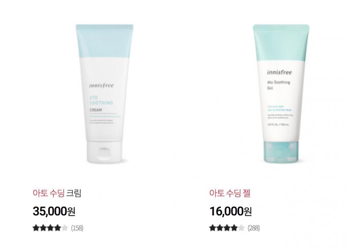 이니스프리의 '아토 수딩 젤'도 지난 1일부터 1만4000원에서 1만6000원으로 약 14.3% 올랐다. '아토 수딩 크림'은 3만3000원에서 6.1% 오른 3만5000원에 판매 중이다.