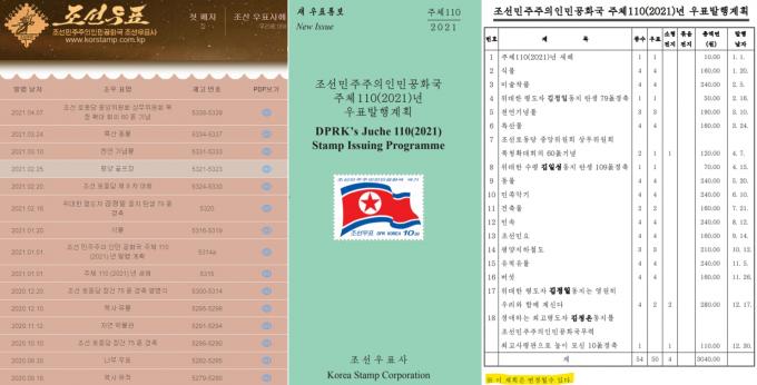 ▲ 북한에서 우표를 독점 발행·유통하는 조선우표사가 공시한 '2021년 우표발행계획'에 따르면, 북한은 올해 18회 54종의 우표를 발행할 예정이다. 하단에 '이 계획은 변경될 수 있다'고 표기돼 있다. [조선우표사 홈페이지 캡처]