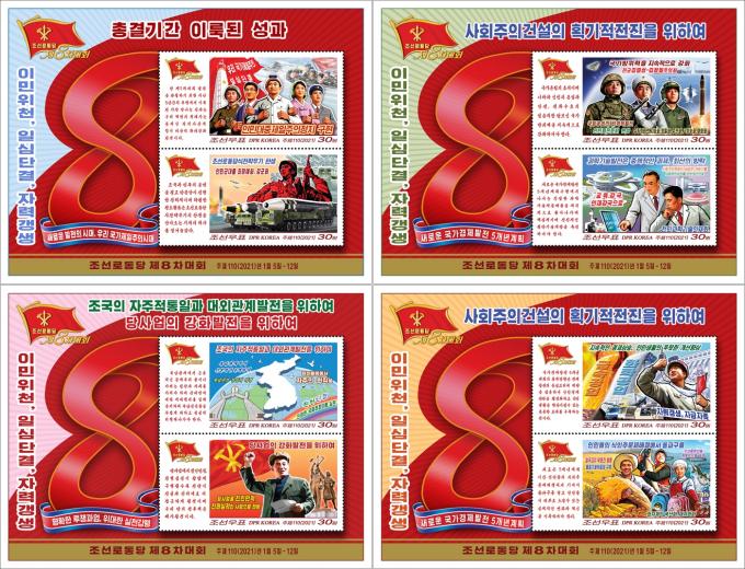 ▲ 지난 2월 20일 조선우표사가 발행한 제8차 당대회 기념 우표 [조선우표사 홈페이지 캡처]