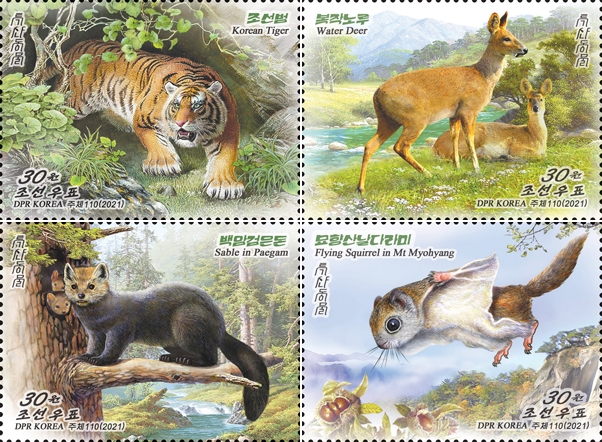 ▲ 오는 3월 24일에 발매할 예정이라고 발행 통보한 북한의 토착 동물 시리즈 기념우표 4종 [조선우표사 홈페이지 캡처]