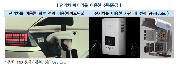 연구원은 "앞으로 전기차 배터리 성능이 향상되고 배터리 구독 서비스 등 새로운 모델이 늘어나면 ESS와 에너지 운반체로서 전기차의 활용도가 더 높아질 것"이라며 "배터리 밀도와 전기차 에너지 효율성이 향상되면 외부 전력 공급으로 인한 주행거리 단축을 우려하지 않아도 될 뿐 아니라 충전 시간도 단축될 것"이라고 전망했다.