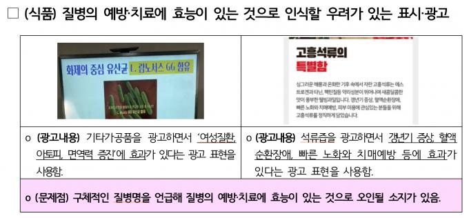 ▲ 질병의 예방·치료에 효능이 있는 것으로 인식할 우려가 있는 표시·광고 사례 [한국소비자원 제공]
