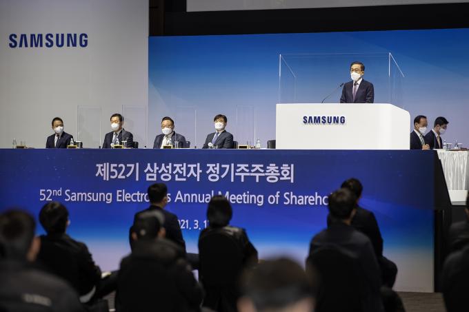 삼성전자는 이날 경기 수원시 수원컨벤션센터에서 주주, 기관투자자 등 900여 명이 참석한 가운데 제52기 정기 주주총회를 개최했다.