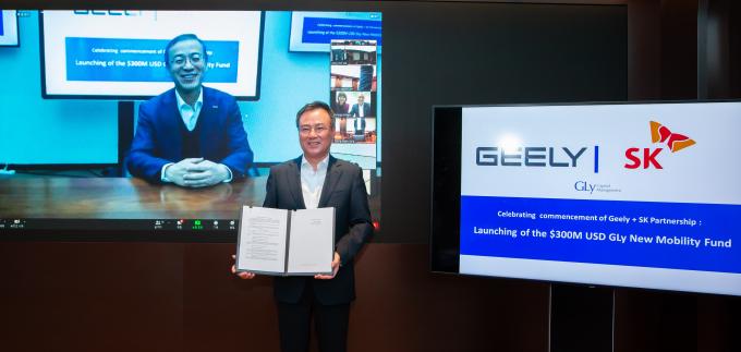 이날 SK그룹에 따르면 뉴모빌리티 펀드의 총 설정 규모는 3억 달러(약 3372억 원)다. SK㈜와 지리자동차그룹이 각각 3000만 달러(약 337억 원)를 출자했다. 유럽계 은행, 아시아 지역의 연기금을 비롯해 다양한 글로벌 투자자들이 출자자로 나설 예정이다.