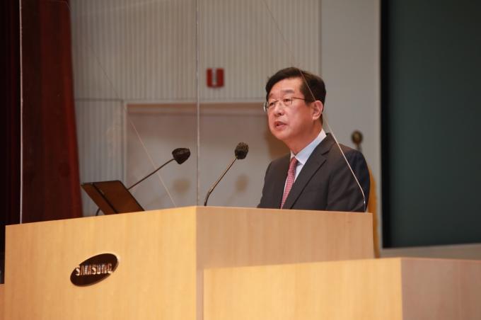 ▲ 고정석 삼성물산 대표이사 사장이 19일 서울 강동구 글로벌엔지니어링센터에서 열린 정기 주주총회에서 발언하고 있다. [삼성물산 제공]