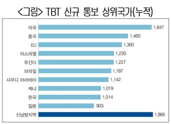 보고서에 따르면 무역기술장벽은 1995년 세계무역기구(WTO) 출범 이후 연평균 11%씩 증가하고 있다. 특히 2018년부터는 3년 연속 무역기술장벽이 3000건 이상 생겨나며 매년 최대치를 경신하고 있다.