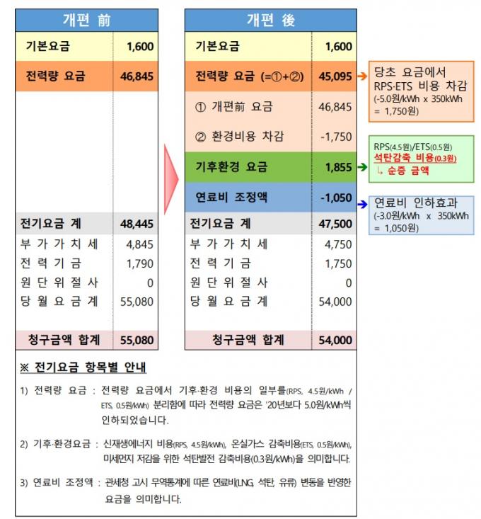 ▲ 원가연계형 전기요금 체계 적용 시 청구서 변경 예시. [산업통상자원부 제공]