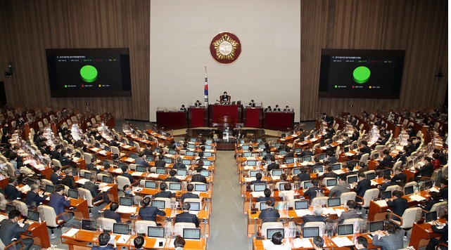 국회는 24일 본회의를 열고 LH 직원의 재산 등록을 의무화하는 내용의 공직자윤리법 개정안을 가결했다.