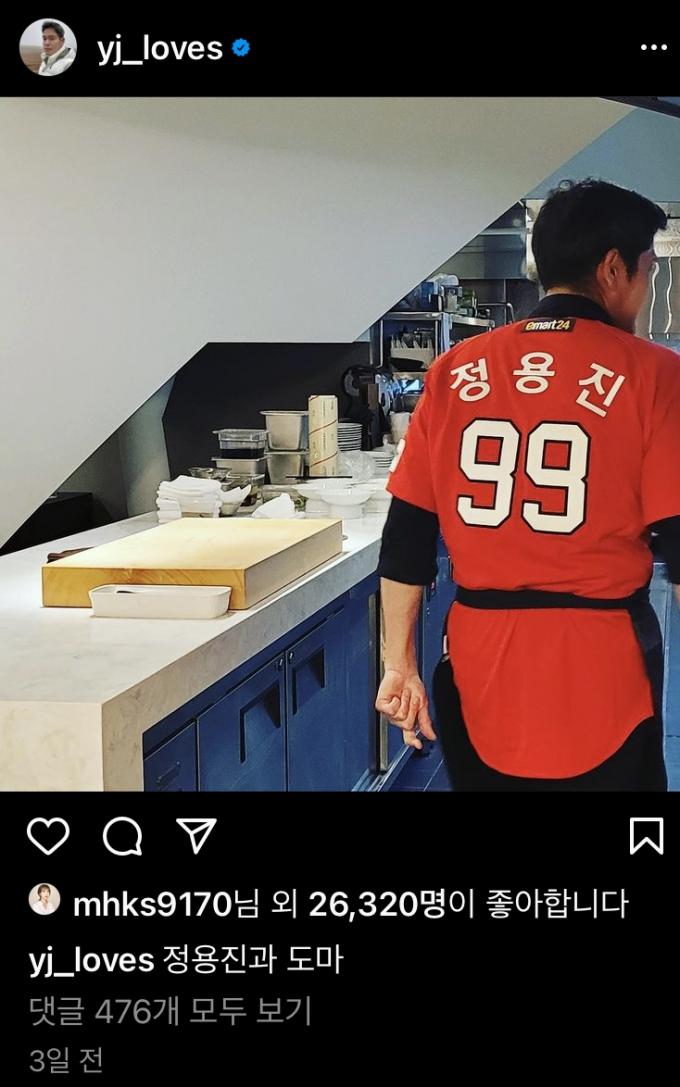 ▲ 정용진 신세계그룹 부회장이 등번호 99가 새겨진 빨간색 야구 유니폼을 공개했다. [정용진 부회장 인스타그랩 캡처]