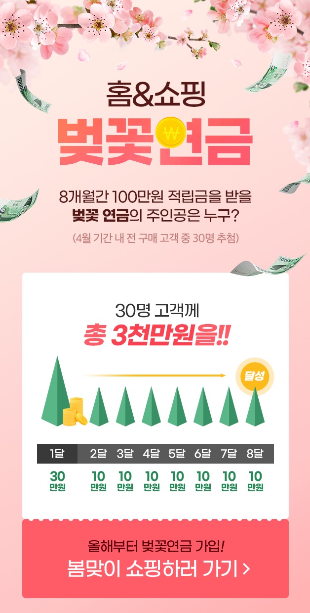 홈앤쇼핑(대표 김옥찬)이 봄을 맞아 고객 쇼핑혜택을 더한 '벚꽃연금' 경품 이벤트를 진행한다고 31일 밝혔다.