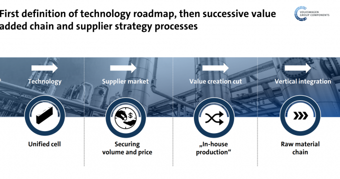 ▲ 지난 15일 열린 폭스바겐의 '파워 데이'보다 두달 앞선 IR 자료의 일부. 폭스바겐의 배터리 전략 변화에 대한 내용이 암시돼 있다. [폭스바겐 웹사이트 캡처]