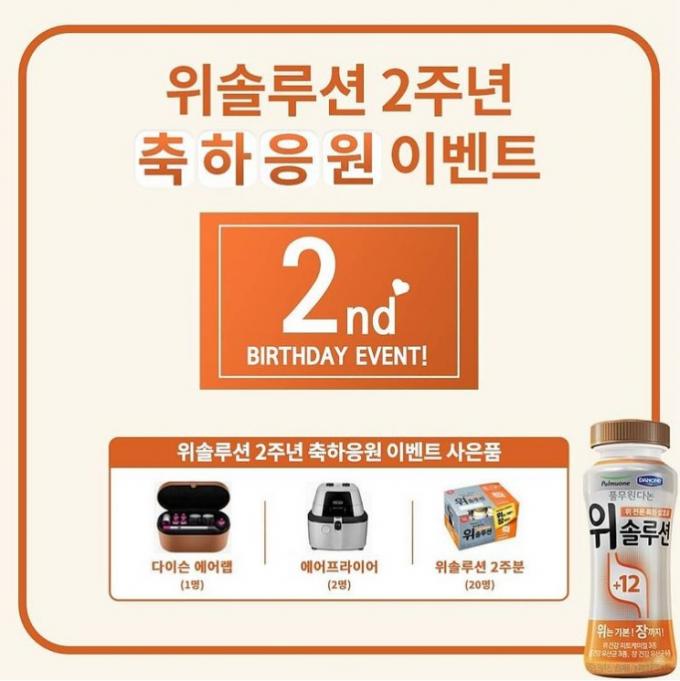 풀무원다논이 진행하는 이번 이벤트는 위솔루션 출시 2주년을 맞아 꾸준한 고객 성원에 보답하고자 마련됐다.