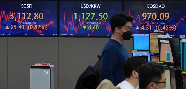 코스피 지수는 이틀 연속 상승하며 3100대로 올라섰다. 이날 코스피는 전 거래일 대비 25.40포인트(0.82%) 오른 3112.80에 거래를 마쳤다. 3100선 상회는 2월 19일(3107.62) 이후 6주 만이다.