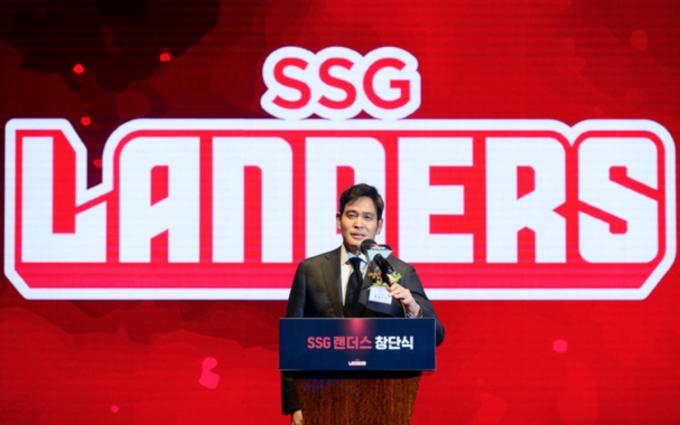 ▲ 정용진 신세계그룹 부회장이자 SSG 랜더스 구단주가 지난달 30일 오후 서울 중구 웨스틴 조선호텔에서 열린 SSG 랜더스 창단식에서 창단 포부를 밝히고 있다. [뉴시스]
