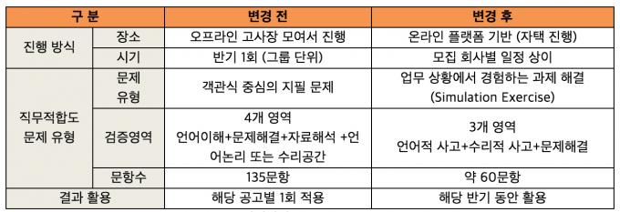 또한 응시자 편의와 코로나19 상황을 고려해 엘탭 전 과정을 오프라인에서 온라인 진단으로 변경한다. 사전 본인 인증을 통해 진단 프로그램을 설치하고 감독위원이 온라인으로 화상 감독한다.