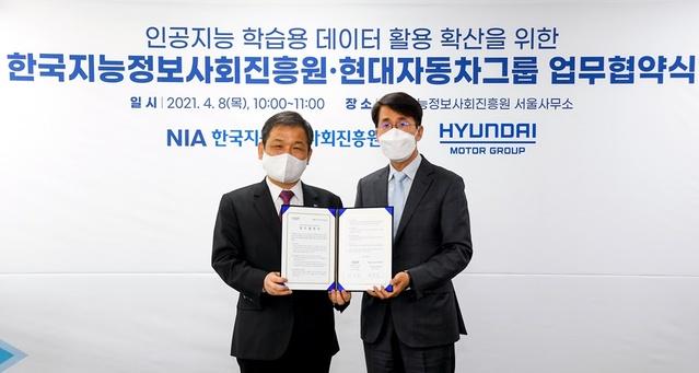 현대차그룹은 한국지능정보사회진흥원과 '인공지능 학습용 데이터 공유 업무협약(MOU)'을 체결했다고 8일 밝혔다. 이번 업무협약은 국내 자동차 기업의 소프트웨어 발전을 가속화하고 글로벌 경쟁력을 강화하는 것을 목적으로 한다.