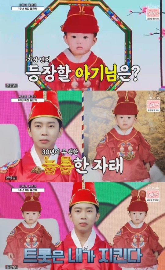 임영웅 돌사진에 붐은 "사진과 똑같다"고 했다. 아빠와 함께 사진을 찍었던 어린 영탁에게는 김성주가 "아빠가 대신 안은 것 같다"고 말했다. 이찬원과 막내 정동원도 떡두꺼비 같은 모습이었다.
