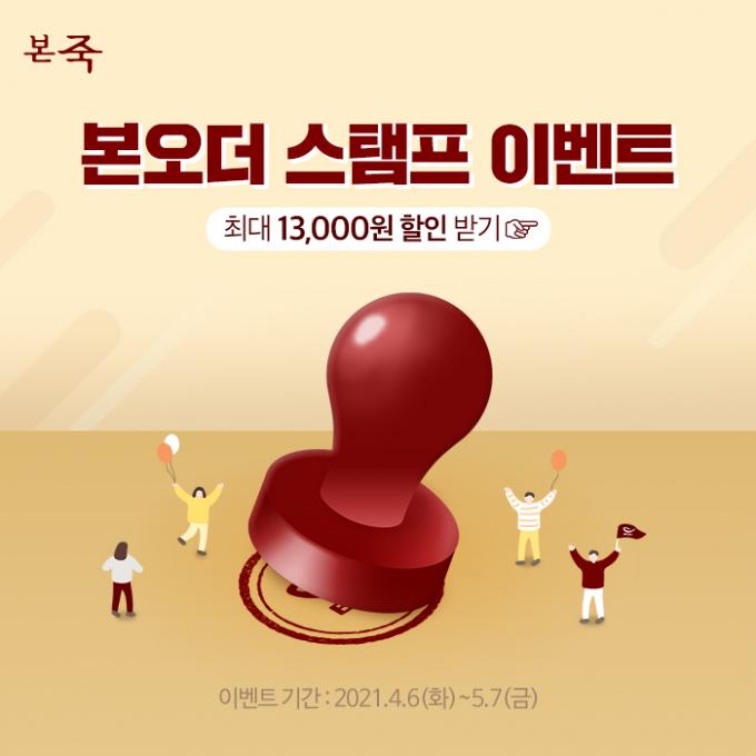 현재 5월 7일까지 '본오더 스탬프 적립 이벤트'를 진행하고 있으며, 해당 이벤트는 본오더 회원이라면 누구나 참여 가능하다. 해당 기간 내에 본오더를 통해 배달비를 제외하고 1만 원 이상 주문 시, 스탬프가 자동 적립되며, 3회 적립 시 3000원 쿠폰이, 5회 적립 시에는 1만 원 쿠폰이 발행돼, 최대 1만3000원의 할인 혜택을 받을 수 있다.