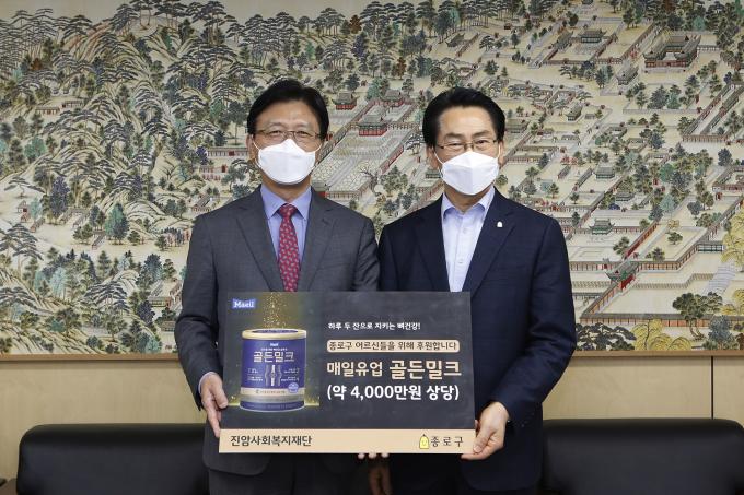 전달식에는 김영종 종로구청장, 매일유업 조성형 부사장 등이 참석했다. 매일유업 본사가 위치한 종로구 관내 어르신의 뼈건강을 위해 진암사회복지재단은 약 4000만 원 상당의 골든밀크 제품을 후원한다.