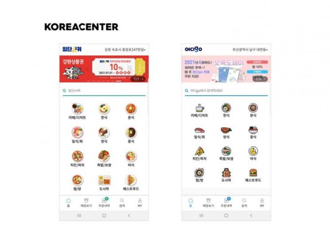 코리아센터는 강원도 지자체들과 협업해 만든 일단시켜와 부산 남구의 어디go 공공배달앱이 골목상권 소상공인들과 소비자들로부터 큰 인기를 얻고 있다고 12일 밝혔다.