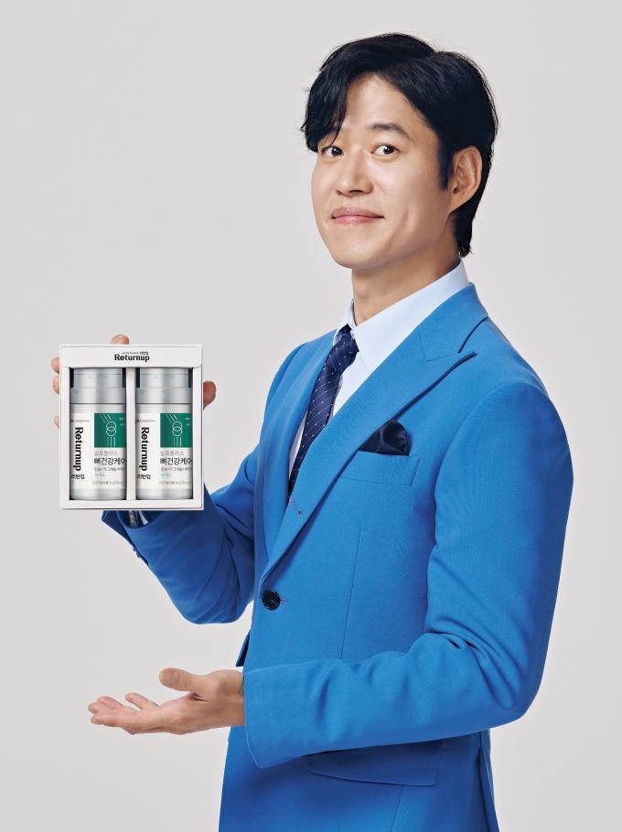 ▲ CJ제일제당 건강기능식품 전문 브랜드 '리턴업' 신규모델로 발탁된 배우 유준상이 제품을 선보이고 있다. [CJ제일제당 제공]