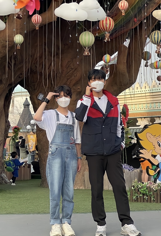 ▲ 놀이공원에서 포즈를 취하고 있는 임영웅과 정동원. [임영웅 공식 유튜브]