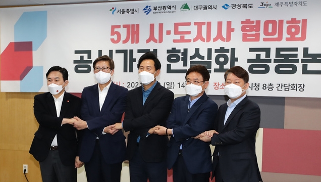 오세훈 서울시장·박형준 부산시장·권영진 대구시장·이철우 경북지사·원희룡 제주지사는 이날 오후 2시 서울시청에서 '공식가격 현실화 공동 논의' 간담회에 참석했다. 이들은 비공개 회의 후 공동건의문을 발표했다.