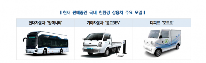▲ 국내 주요 친환경 상용차 모델 [한국자동차연구원 제공]