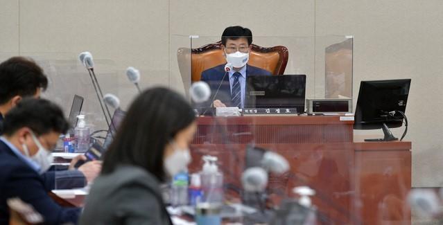 산자중기위 여당 간사인 송갑석 의원은 간담회 후 기자들과 만나 "아마 이번 주 법안소위에서 (법안처리가) 쉽지 않을 것 같다"며 "5월로 넘어가야 하지 않을까 싶다"고 밝혔다.