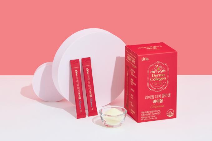 라이필 더마 콜라겐 바이옴은 식약처로부터 기능성을 인정받은 콜라겐과 프로바이오틱스가 함께 들어 있어 피부는 물론 장 건강도 한번에 챙길 수 있는 제품이다. 섭취가 용이한 분말 스틱 형태로 만들었으며, 하루 1포만 섭취하면 된다.