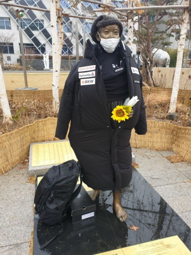 23일 서울 강동경찰서에 따르면 경찰은 1월 22일 강동구청 앞에 놓인 평화의 소녀상에 일본 브랜드 패딩 등을 입히고, 같은 브랜드의 가방과 신발, 양말 등을 놓은 인물로 남성 A씨를 특정해 조사하고 있다.
