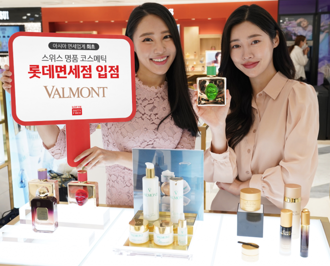 ▲서울시 중구 롯데면세점 명동본점 11층 '발몽(VALMONT)' 매장에서 모델들이 제품을 소개하고 있다. [롯데면세점 제공]