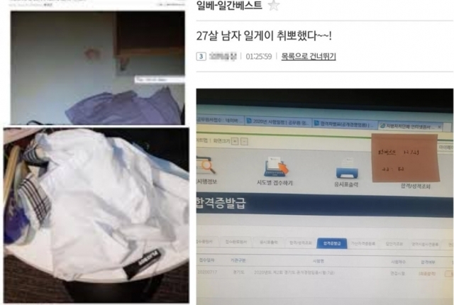 28살인 A씨는 지난해 경기도 7급 공무원 임용 시험에 최종 합격한 뒤 일베에 합격 인증 사진을 올렸다.