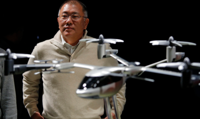 ▲ 정의선 당시 현대차그룹 총괄 수석부회장이 지난해 1월 6일(현지시간) 미 네바다주 라스베이거스에서 열린 CES 2020에서 현대차 전시관에서 UAM 관련 콘셉트 모델을 설명하고 있다. [뉴시스]