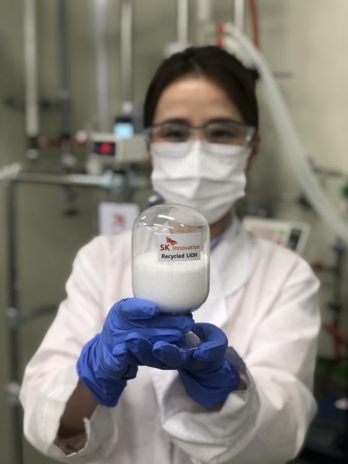 SK이노베이션은 독자 개발한 리튬 회수 기술을 활용하여 사용 후 배터리에서 수산화리튬 및 니켈, 코발트 등 금속 자원을 회수, 이를 다시 배터리용 양극재 제조에 활용한다.