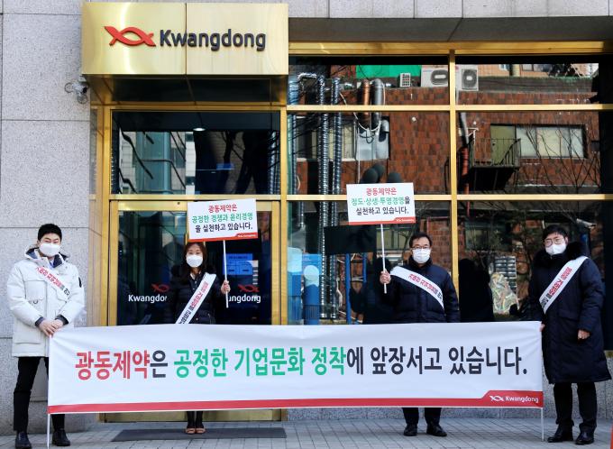 광동제약은 윤리경영문화 정착과 공정거래법 준수를 위해 2018년부터 ISO 37001 부패방지경영시스템을 준비, 지난해 인증을 받았다. 이 회사는 윤리경영 및 부패방지를 위해 2018년 익명제보시스템을 개설, 운영 중이며 2019년에는 윤리경영위원회를 신설하고 임직원 대상 윤리경영 홈페이지를 별도로 구축했다.
