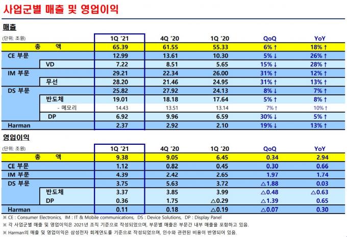 파운드리(위탁생산) 극자외선(EUV) 5나노 첨단공정 전환과 평택 2공장 및 중국 시안 2공장 반도체 설비투자로 비용이 증가한 것이 수익성을 끌어내린 요인으로 꼽힌다. 실제 삼성전자의 올 1분기 시설투자 전체 규모는 9조7000억 원에 달한다. 사업별로는 반도체 8조5000억 원, 디스플레이 7000억 원 수준으로 반도체에 집중돼 있다.