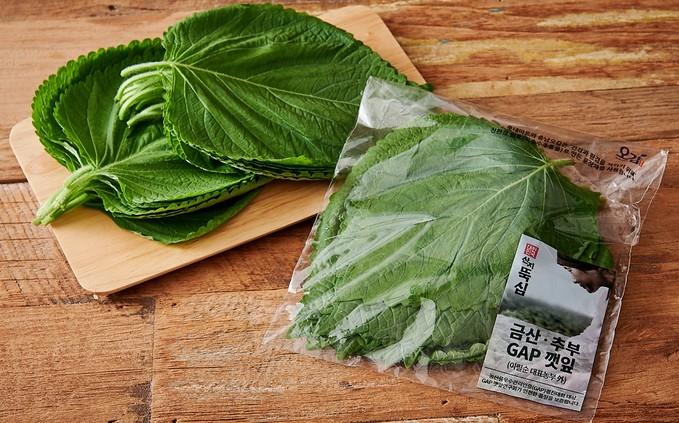 ▲ 친환경 포장재가 사용된 금산 추부 GAP 깻잎 상품 [롯데마트 제공]