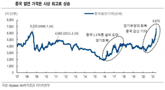 변종만 NH투자증권 연구원은 "철강 감산 조치가 현실화할 경우 철강재 가격 상승으로 이어질 것"이라며 "중국과 호주 관계 악화와 탄소 저감 정책이 철광석 가격 상승 및 중국 정부의 철강 생산 감산을 야기하고, 이것이 철강 가격의 상승세를 연장시킬 것"이라고 내다봤다.
