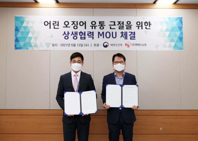 NS홈쇼핑이 12일 정부세종청사에서 해양수산부와 '어린 오징어 유통 근절을 위한 상생협력' 업무 협약식을 맺었다고 13일 밝혔다.