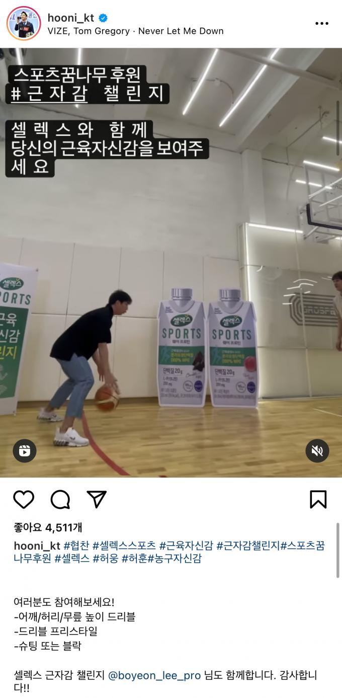 근자감 챌린지에 참여한 농구선수 허웅과 허훈, 배구선수 한유미는 매일유업에서 각각 500만 원 상당의 셀렉스 스포츠를 지원받고, 스승의 날을 맞아 모교 농구팀에 이를 후원할 예정이다.