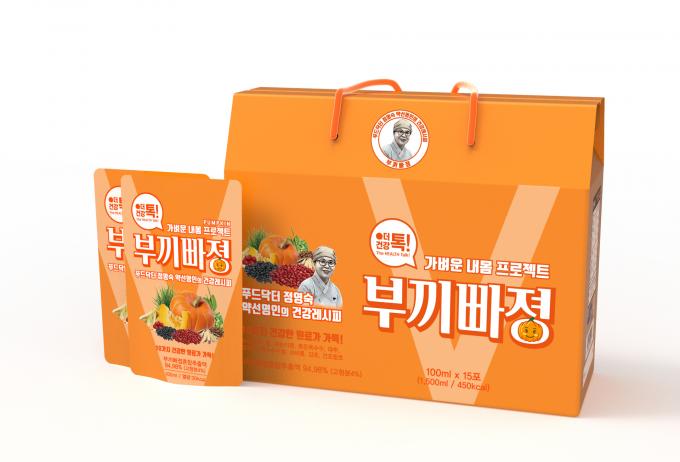 100% 자연원료…푸드닥터 정영숙 약선명인 건강 레시피로 만든 붓기 관리 음료 건강기능식품 전문기업 ㈜메디뉴트라는 가정의 달 5월을 맞이해 100% 자연원료로 만들어진 부끼빠졍 혼합추출액으로 만든 붓기 관리 건강 음료 '부끼빠졍' 선물세트를 출시한다고 16일 밝혔다.