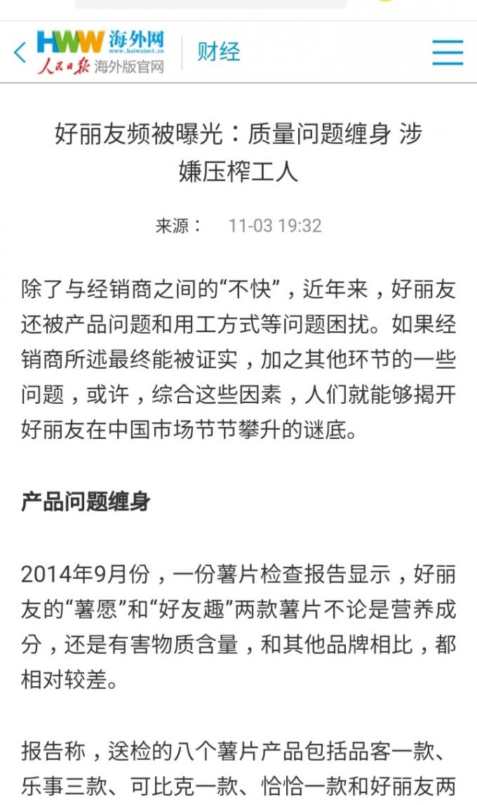중국 인민일보 해외판 공식 홈페이지 해외망(海外网)에 따르면, 오리온이 중국법인 내 공장 노동자를 착취했다는 의혹이 폭로됐다.