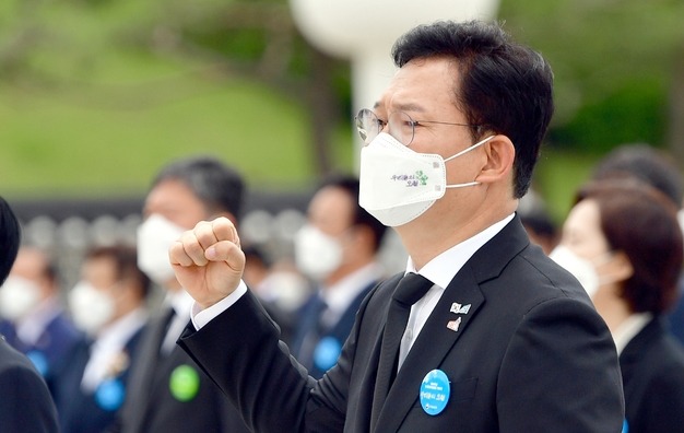18일 광주 5·18기념문화센터를 찾은 더불어민주당 송영길 대표는 당헌을 강조했다. '대선주자들이 경선 룰을 정리해달라고 요구하는데 언제까지 정하겠다는 계획이 있느냐'는 질문에 대한 답변에서다.