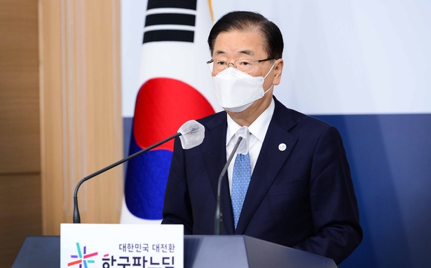 정 장관은 한미정상회담 공동성명에 '한반도 비핵화'란 표현이 명시된데 대해 "(조) 바이든 미 신행정부 출범 이후 초기에 북한의 비핵화, 한반도의 비핵화를 혼용하는 경향이 있었으니 이번 회담을 계기로 양측의 불필요한 오해를 살만한 용어를 통일했다는 의미가 있다"고 설명했다.